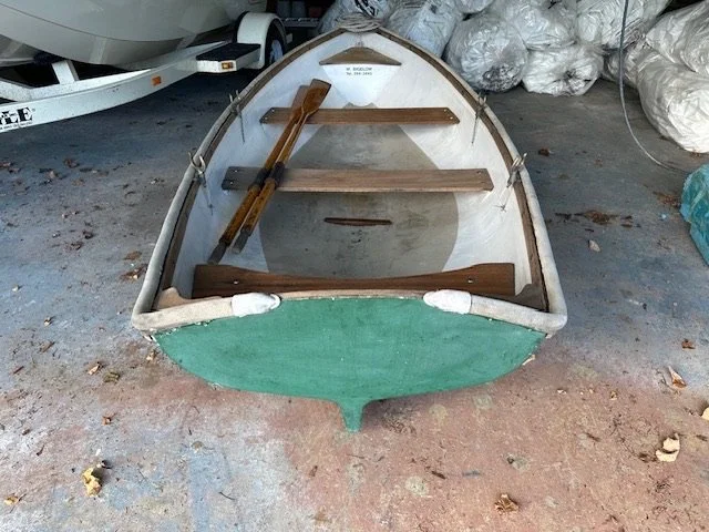 This Newman skiff is in overall decent condition, however the gelcoat is pretty faded so it would benefit from a new coat of paint. Built in the mid-1980’s. Owner used it to row to Baker’s Island from Northeast Harbor, so plenty seaworthy!